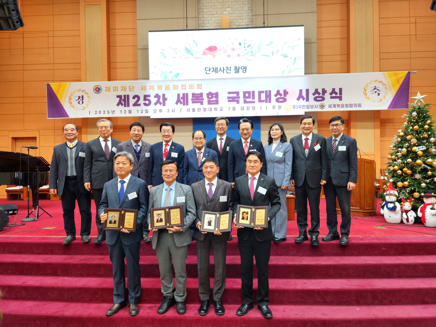 재미재단 세계복음화협의회(세복협)가 12일 오후 서울 구로구 서울한영대학교에서 제25차 국민대상 시상식을 진행했다. 이번 시상식은 예장 총회(한영글로벌), 서울한영대학교, 미주선교회, 한국기독교대연감, 서울한영대학교회, 서서울중앙교회, 새역사창조교회 등이 후원했다.