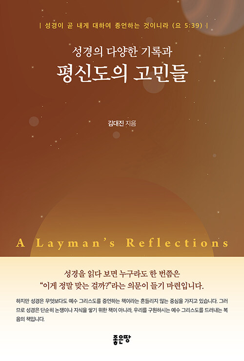 이 책은 “왜 성경에는 이런 차이가 있는가”, “성경은 정말 오류가 없는가”, “믿음과 이해는 어떻게 함께 갈 수 있는가”라는 질문을 정면으로 다룬다. 전문 신학자의 학술서가 아니라, 한 평신도가 성경을 읽으며 실제로 부딪혔던 고민과 씨름의 기록이라는 점이 특징이다. 저자 김대진은 신학적 논쟁을 앞세우기보다, 성경 앞에서 흔들렸던 자신의 경험을 솔직하게 풀어내며 같은 질문을 가진 독자들에게 길잡이가 되고자 한다.