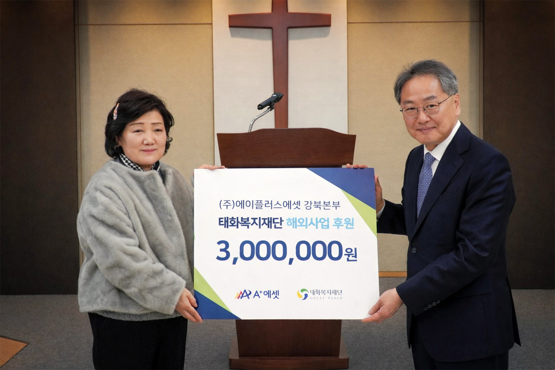 A+에셋이 태화복지재단에 후원금을 전달했다. ©태화복지재단