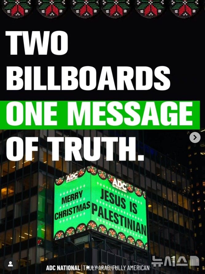 영국 데일리메일에 따르면 이 광고는 미국 아랍인 차별 반대 위원회(ADC, American-Arab Anti-Discrimination Committee)가 기획한 캠페인의 일환으로, 전광판에는 “예수는 팔레스타인인입니다. 메리 크리스마스”라는 문구와 함께 이슬람 경전 코란에 등장하는 예수의 탄생 구절이 아랍어와 영어로 병기돼 게시됐다. ADC는 가자지구를 둘러싼 현재의 인도적 상황에 대한 인식을 제고하고자 이번 광고를 기획했다고 설명했다.