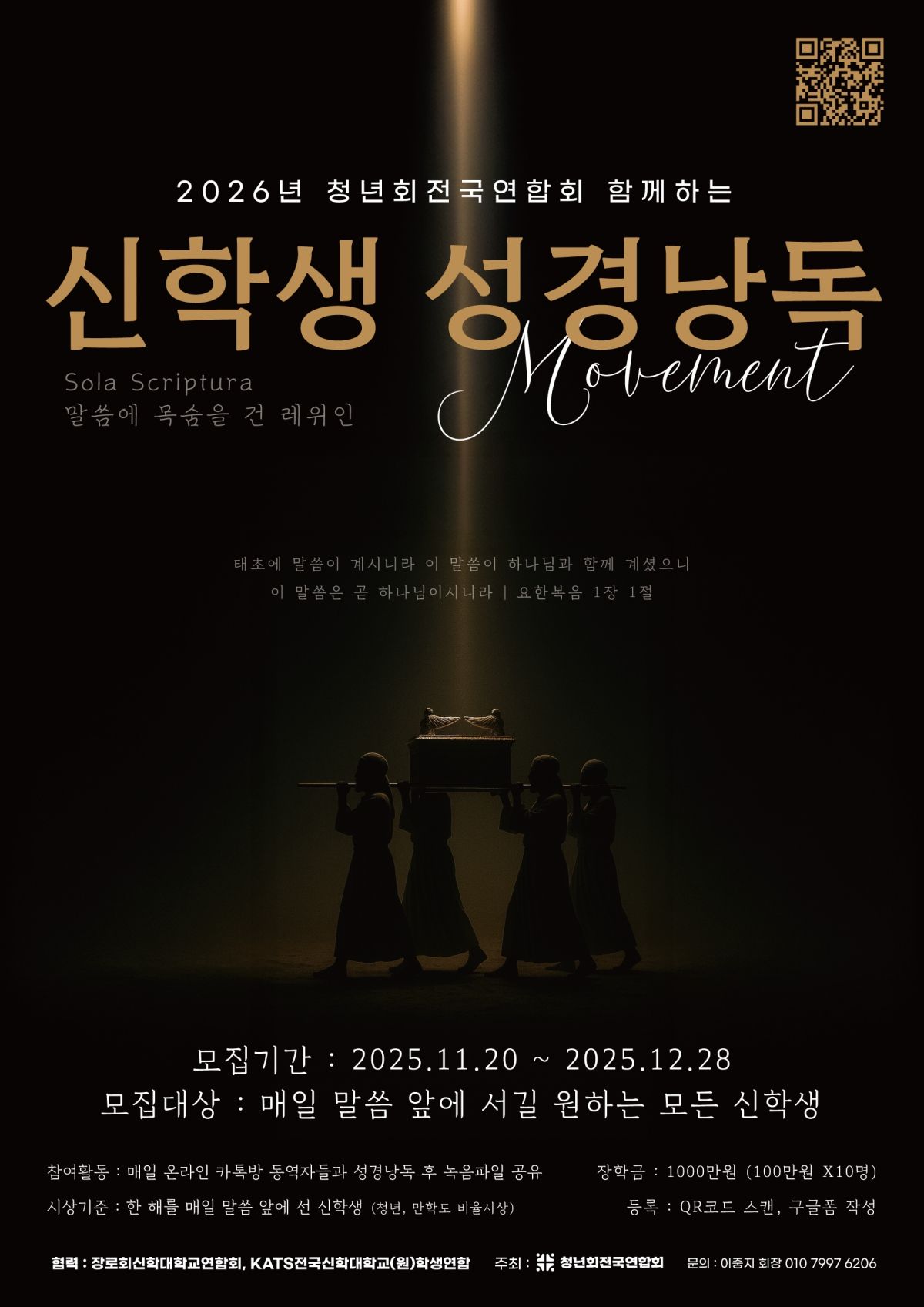 이중지 회장은 “지난 4년간 이어온 성경낭독 운동을 통해 많은 청년들이 말씀 앞에서 변화되고, 그 열매가 교회 공동체로까지 확장되는 것을 보았다”며 “말씀을 붙드는 이 운동이 한국교회 현장 속에서 계속해서 살아 움직이길 기대한다”고 밝혔다.