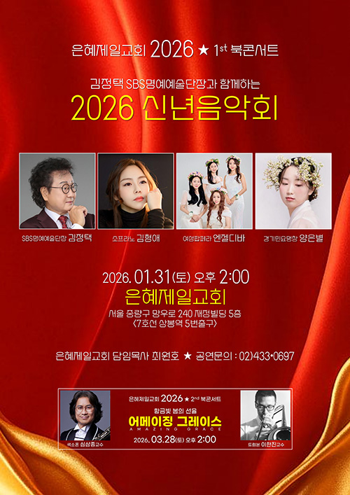 오는 1월 31일 오후 2시, 은혜제일교회 본당에서 열리는 이번 행사는 신앙과 문화, 음악이 어우러진 복합 문화 콘서트로, 새해의 방향과 삶의 기준을 음악과 메시지로 나누는 자리로 마련됐다.