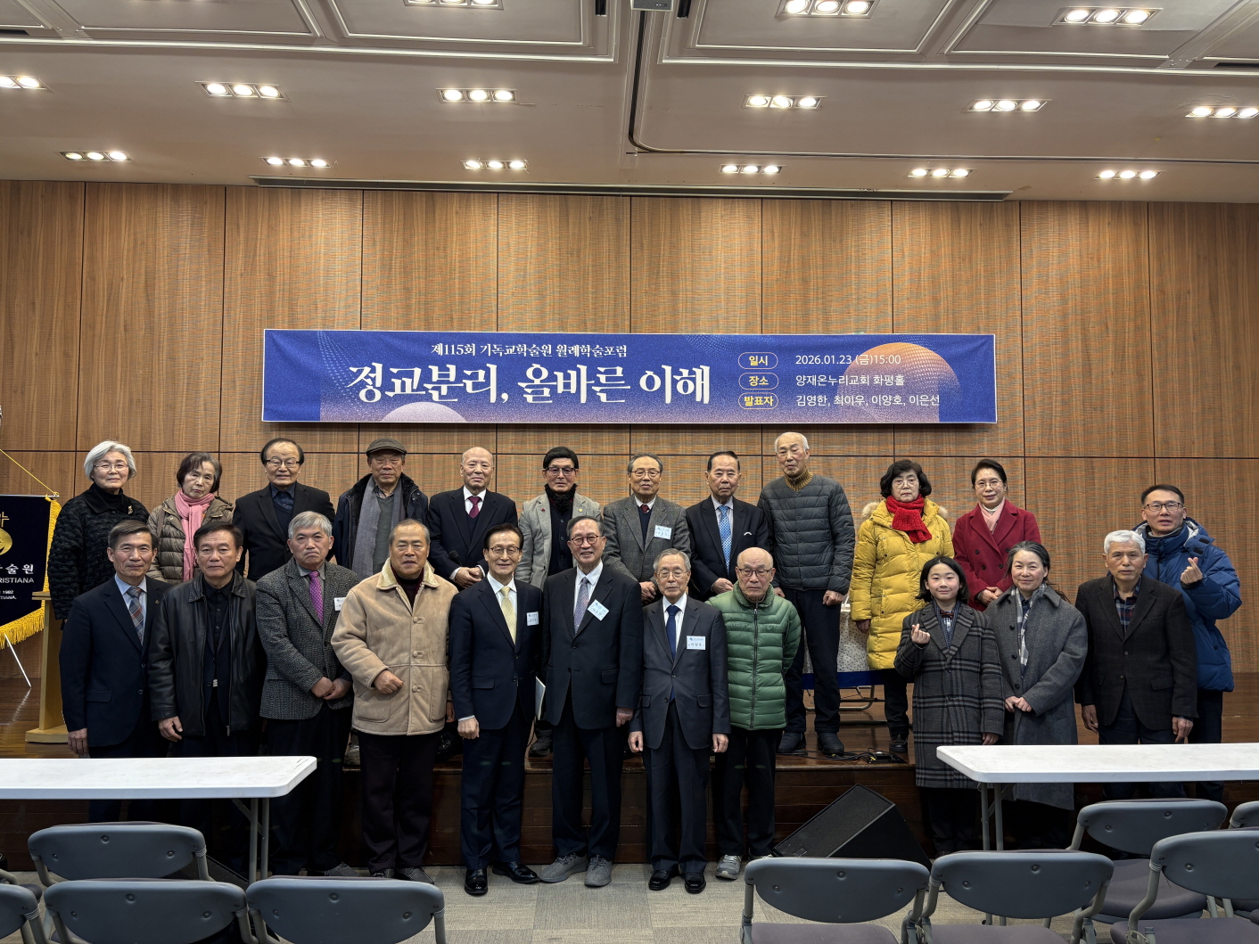 기독교학술원(원장 김영한 박사)이 23일 오후 서울 서초구 양재온누리교회 화평홀에서 ‘정교분리, 올바른 이해’를 주제로 제115회 월례학술포럼 기도회 및 발표회를 개최했다. 이번 월례학술포럼은 정치와 종교의 관계를 둘러싼 신학적·역사적 논의를 중심으로, 정교분리의 의미를 다각도로 조명하는 자리로 마련됐다.