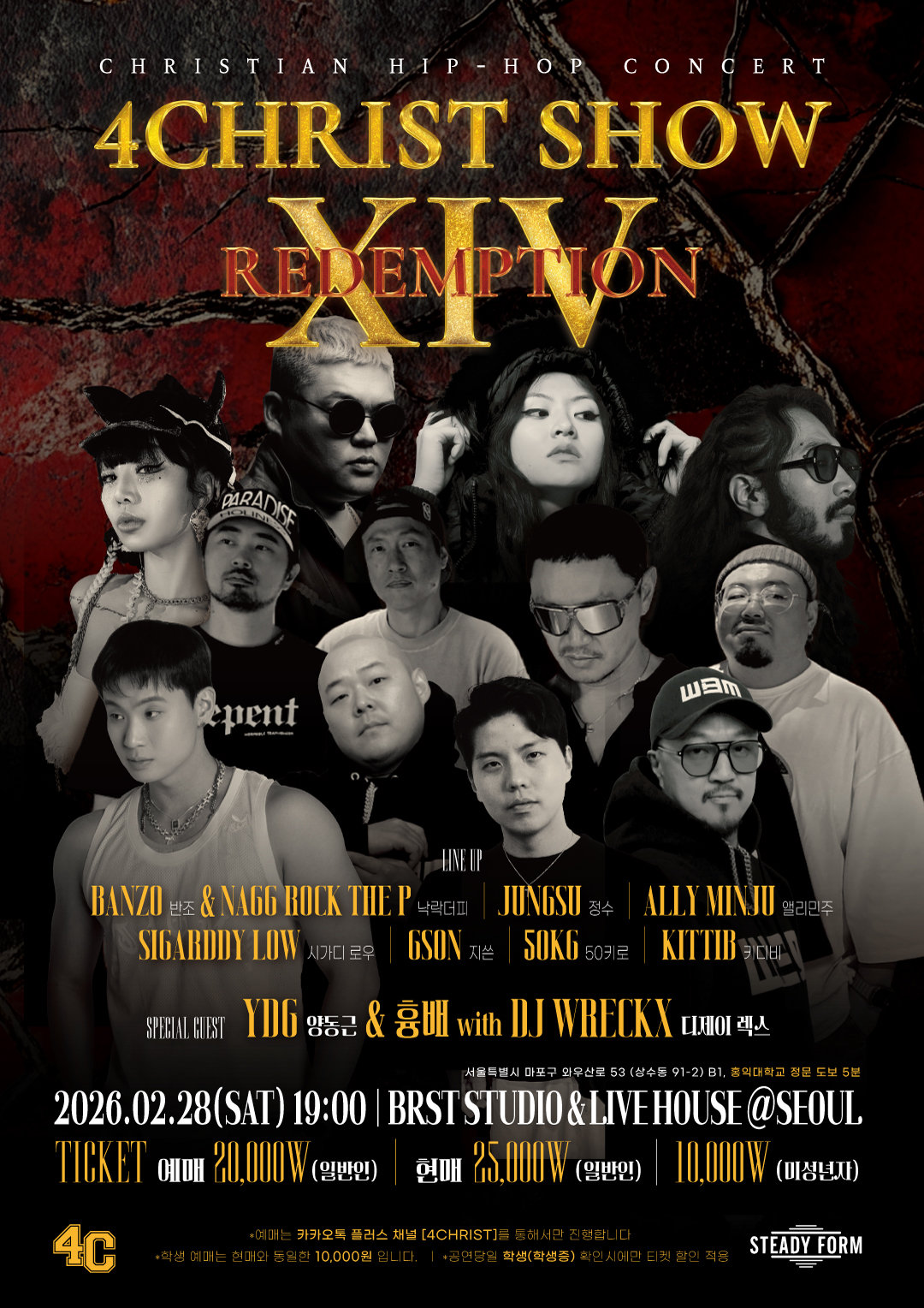 ‘4CHRIST SHOW’(이하 포크쇼)는 2024년 11월 리런칭 이후 이어지고 있는 크리스천 힙합 공연으로, 이번 14번째 공연의 부제는 ‘REDEMPTION(구원)’이다. 공연은 십자가를 통한 구원의 메시지를 힙합 음악으로 풀어내는 무대로 기획됐다.