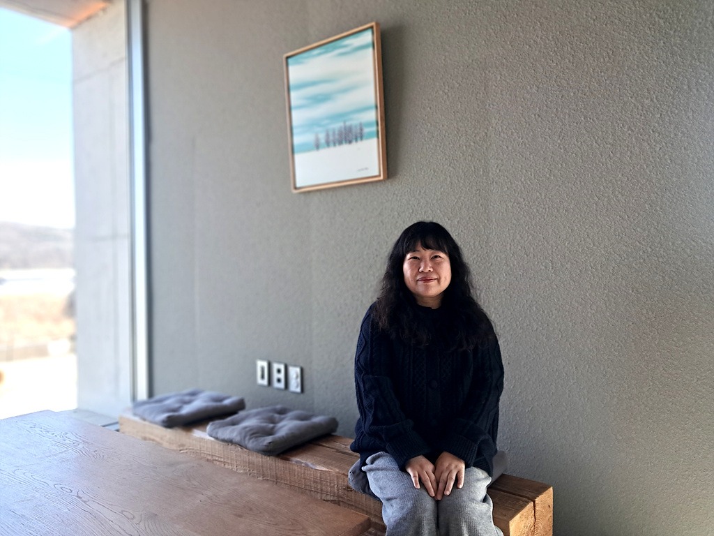 '나무의자 바람에 기대어展' 현장의 민율 작가. ©주최 측 제공