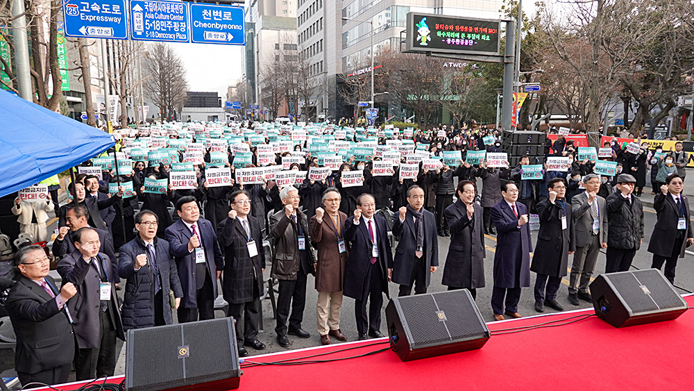 지난 2월 22일 5.18민주광장 인근 금남로 1~3가에서는 전남교회총연합회, 전북기독교총연합회, 전북·광주·전남성시화운동본부 등 170여 개 광주·전북·전남 기독단체 및 시민단체, 서울·경기·대전·부산 등 전국 각지에서 참여한 교계 지도자와 성도, 일반 시민 1만여 명(주최 측 추산)이 악법 저지를 한 목소리로 촉구했다. ‘나라와 민족을 위한 특별연합예배’로 진행된 이번 행사는 자유민주주의와 평등, 생명 존중 가치와 신앙의 자유를 수호하고, 가정과 교회에서 다음세대에 올바른 신앙과 가치관을 전수하기 위해 개최됐다.