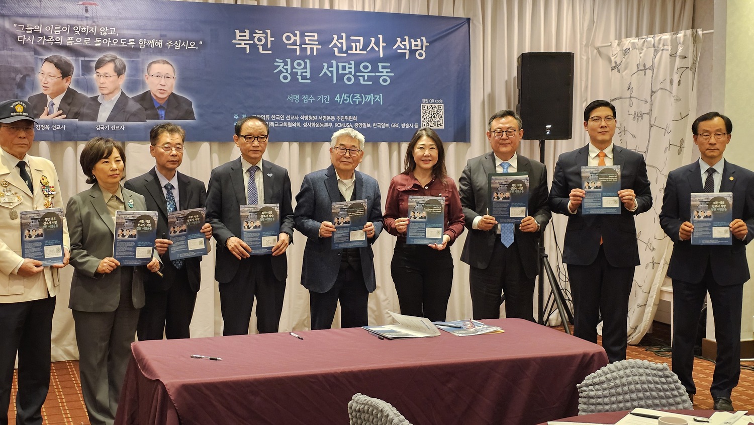 ‘북한 억류 한국인 선교사 석방 촉구 청원 서명운동 추진위원회’는 최근 LA 한인타운 용수산 식당에서 기자회견을 열고 서명운동 출범과 향후 계획을 발표했다. 이날 행사는 남가주교협과 성시화운동본부, KCMUSA 등이 함께 주관했다.