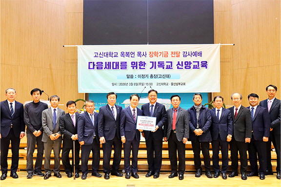고신대학교는 울산남부교회(담임목사 김대현)가 故 옥복언 원로목사의 뜻을 기려 조성한 ‘옥복언 목사 장학기금’ 3천만 원을 전달했다고 최근 밝혔다.