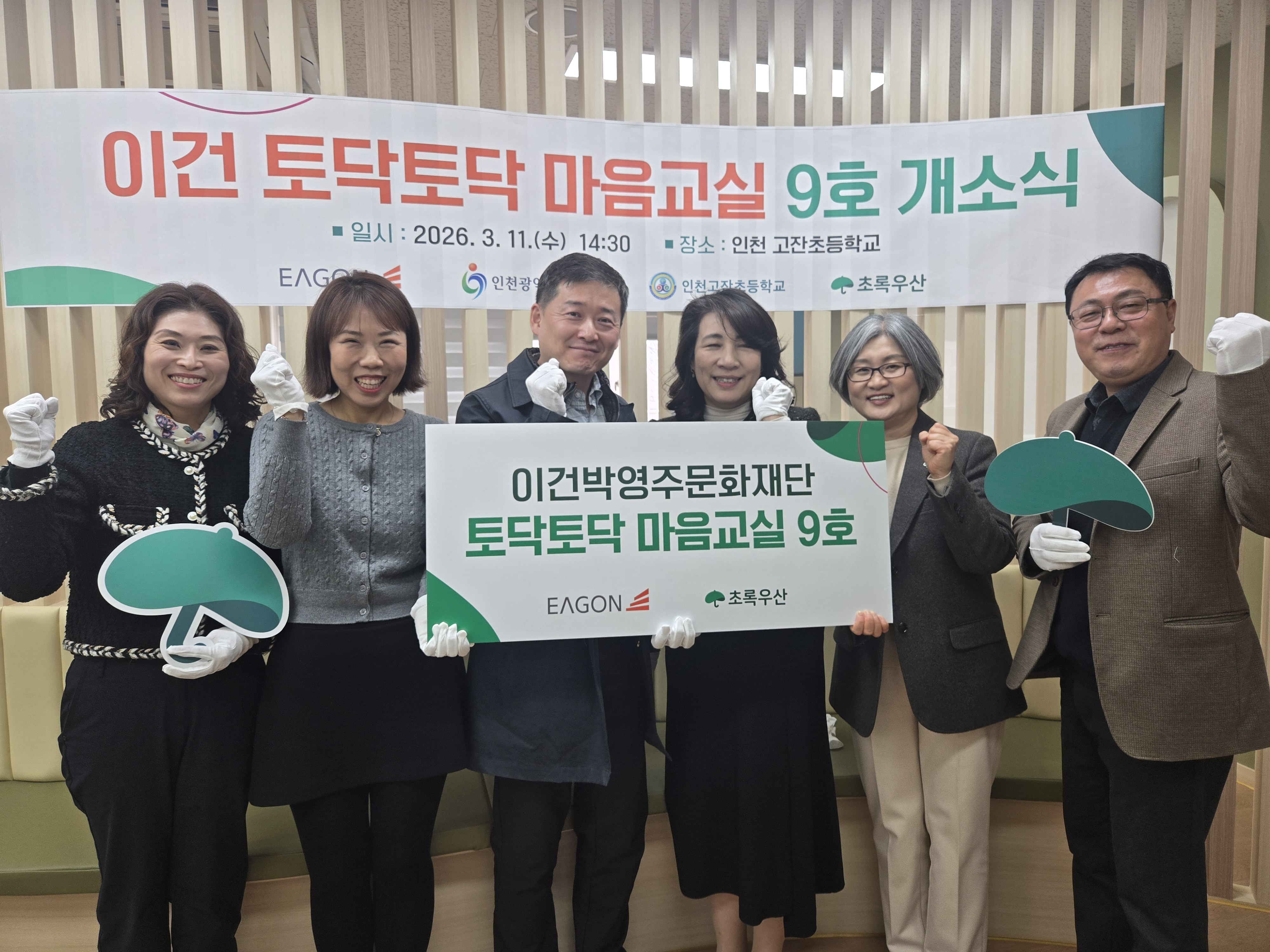 초록우산 인천지역본부(본부장 김진)는 3월 11일 이건박영주문화재단과 함께 인천 고잔초등학교에서 ‘이건 토닥토닥 마음교실’ 9호 개소식을 진행했다고 밝혔다. 이날 행사에는 이건박영주문화재단 최지훈 수석을 비롯해 인천광역시교육청 김경삼 과장, 고잔초등학교 최근화 교장, 임예지 학부모 대표, 초록우산 인천지역본부 김진 본부장 등이 참석해 개소를 축하했다.
