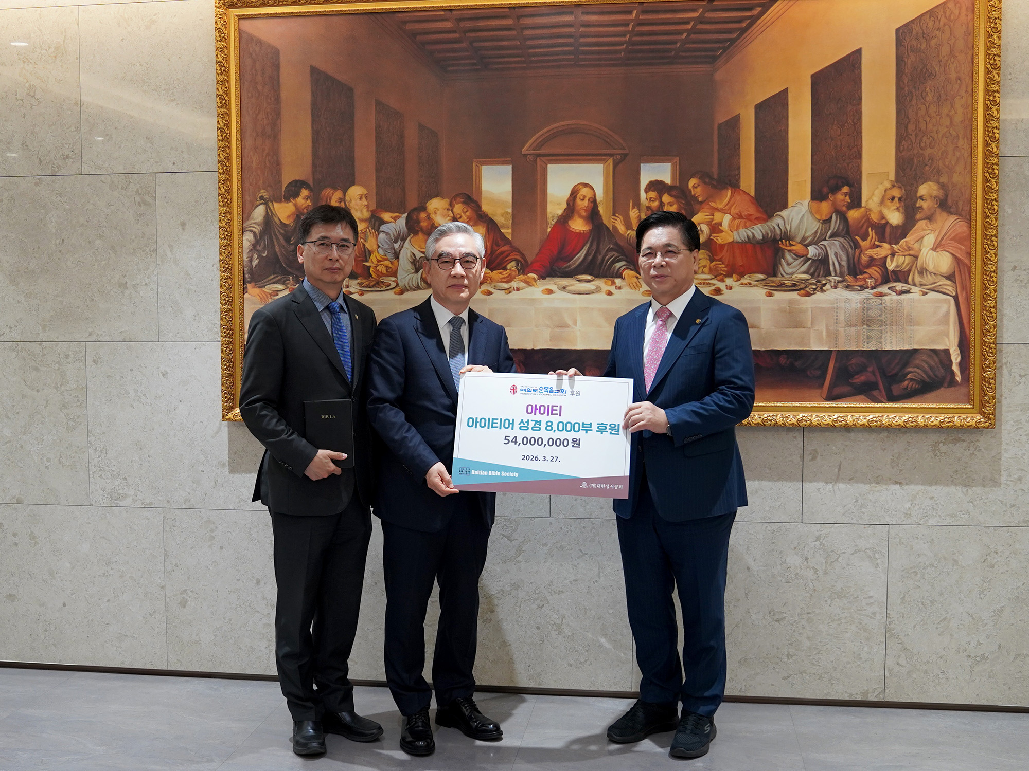 이영훈 여의도순복음교회 담임목사는 기증식에서 성경 보급의 중요성을 강조하며, 성경이 아이티 주민들에게 전해지는 것에 대한 감사의 뜻을 전했다.