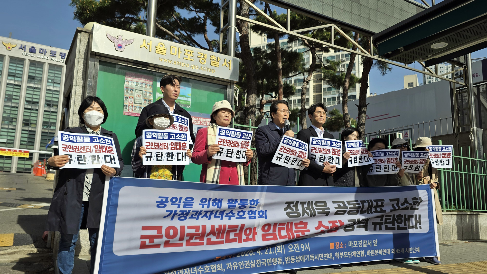 가정과자녀수호협회, 자유인권실천국민행동, 반동성애기독시민연대, 학부모단체연합 등은 21일 오전 서울 마포경찰서 앞에서 기자회견을 열고, 군인권센터와 임태훈 소장을 비판하는 성명을 발표했다.
