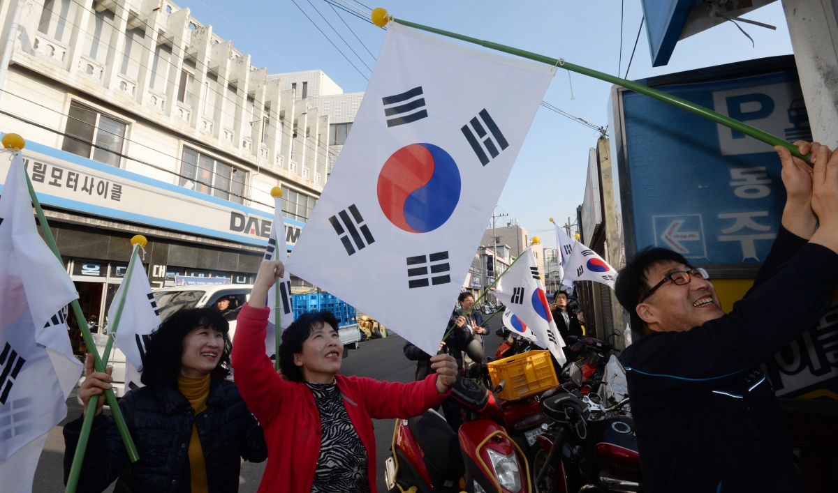 [포토뉴스] 오토바이 골목 태극기 달기 캠페인