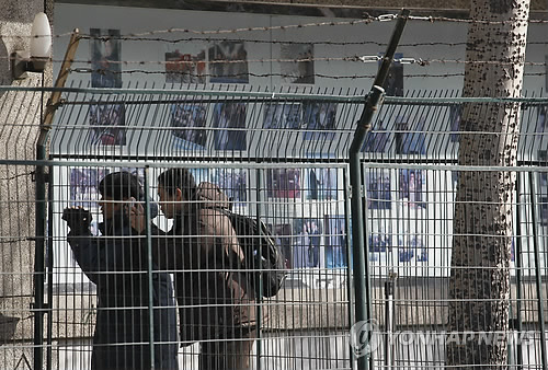 로버트 킹 북한인권특사 등 미국 대표들이 7일(현지시간) 인도적인 대북지원 관련 기술적 문제를 논의하기 위해 북한측과 회동할 베이징주재 북한대사관 입구에서 이날 기자들이 대사관 구내를 비디오 테이프에 담기에 바쁘다.