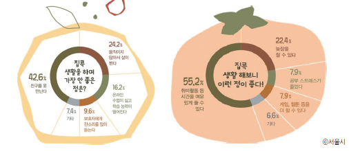 이외 '늦잠을 잘 수 있어서 좋다'는 응답이 22.4%를 기록해 뒤를 이었다. '공부 스트레스가 줄었다'는 답변과 '게임, 웹툰 등을 더 할 수 있어서 좋다'는 답변은 각각 7.9%를 차지했다.