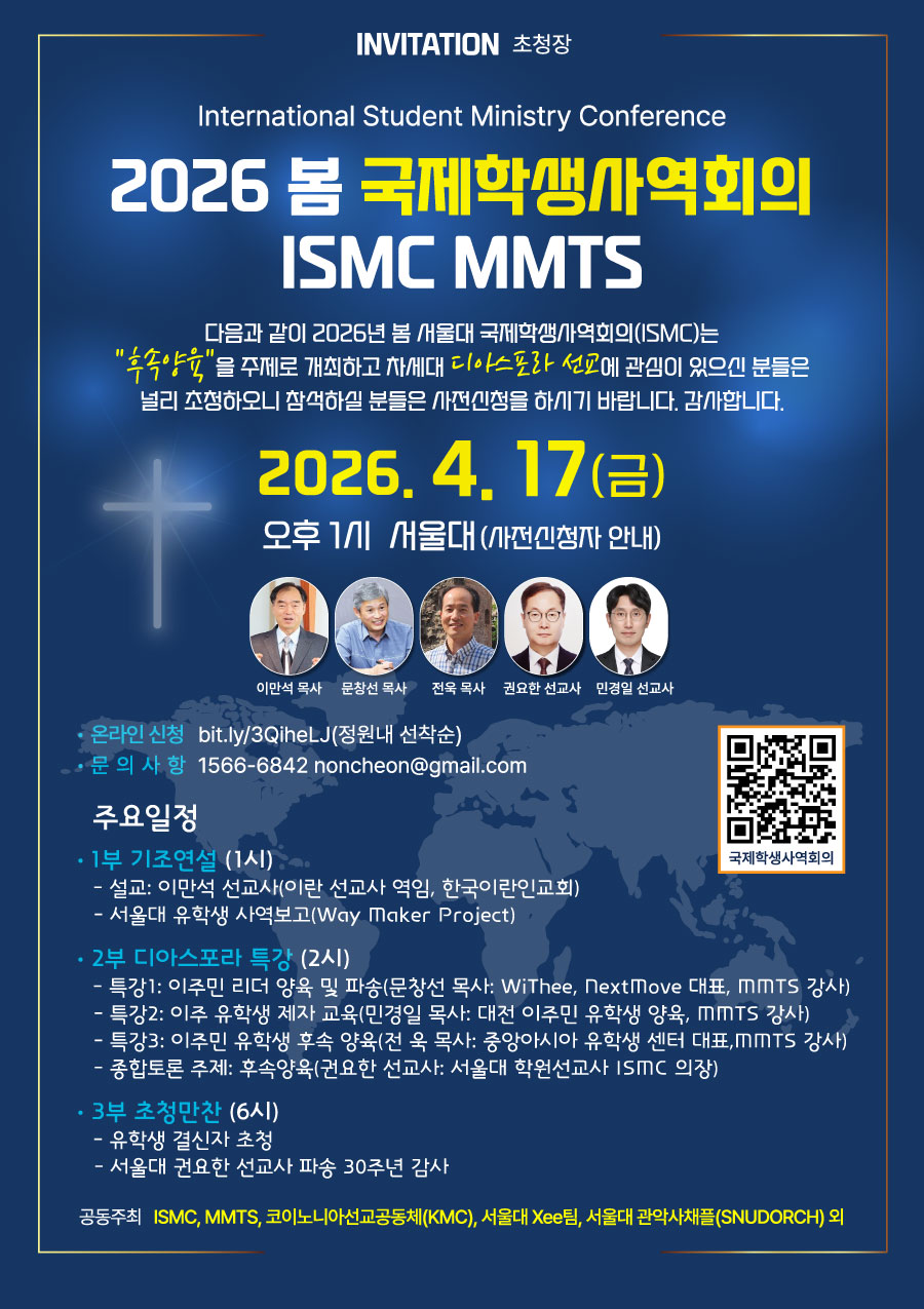 • ‘후속양육’ 주제로 국제학생사역회의 개최… 서울대서 디아스포라 선교 방향 모색