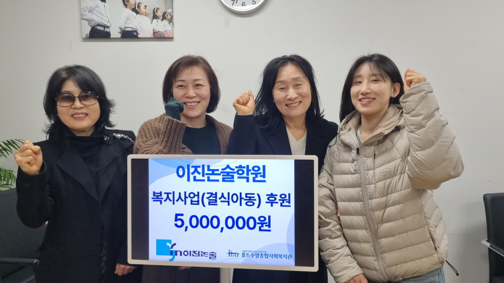 홀트 산하 홀트수영종합사회복지관, 이진논술학원으로부터 결식아동 지원 후원금 전달받아