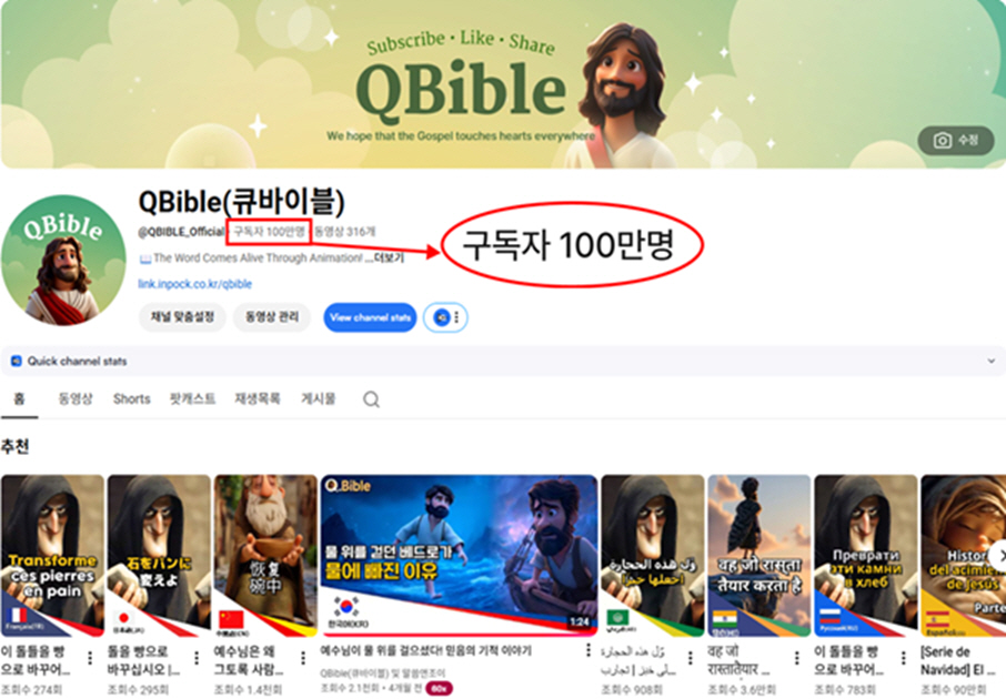 CTS 다국어 성경 애니메이션 ‘큐바이블’, 구독자 100만 명 돌파