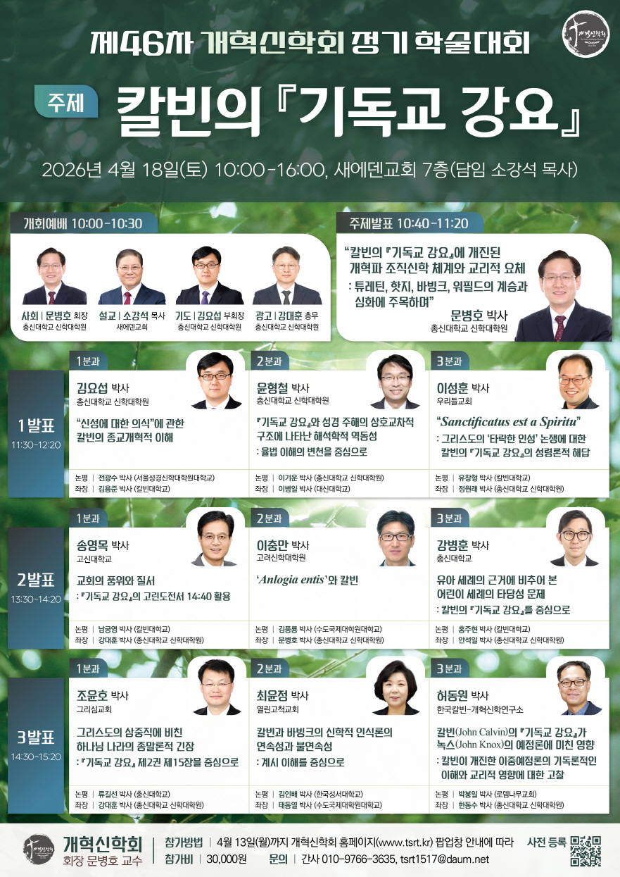 • 개혁신학회, 18일 새에덴교회서 제46차 정기 학술대회 개최